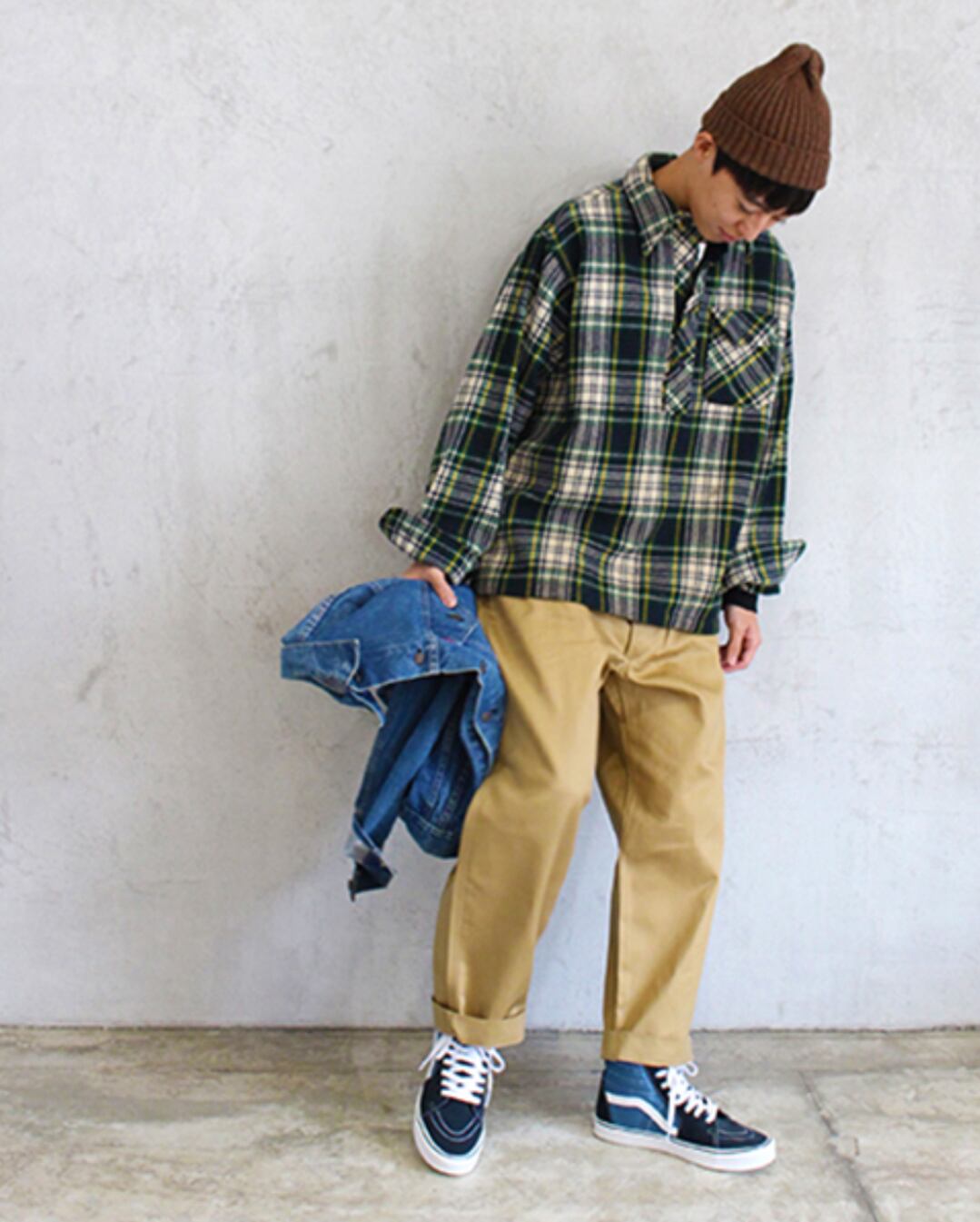 お手持ちの、くたっとした古着のスウェットやTシャツに合わせてのアメカジスタイルや、シャツ、ジャケットなどと合わせてきれいめスタイルにも。