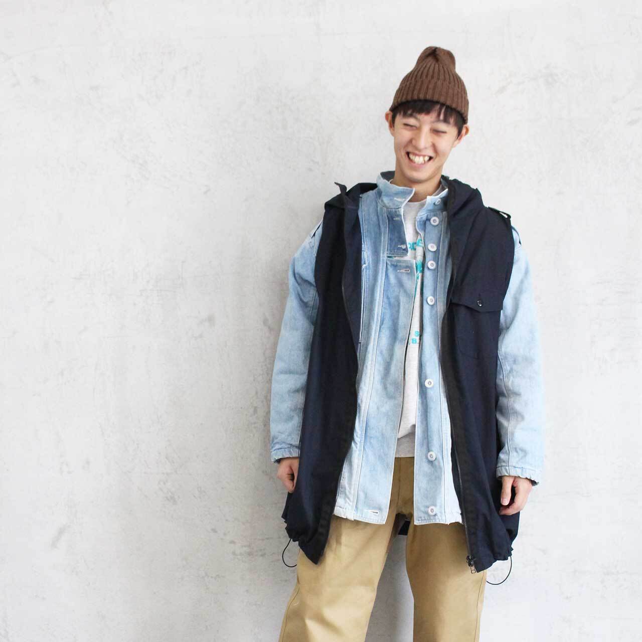 かなりのロング丈と大ぶりなフードが特徴的なYENOPEの