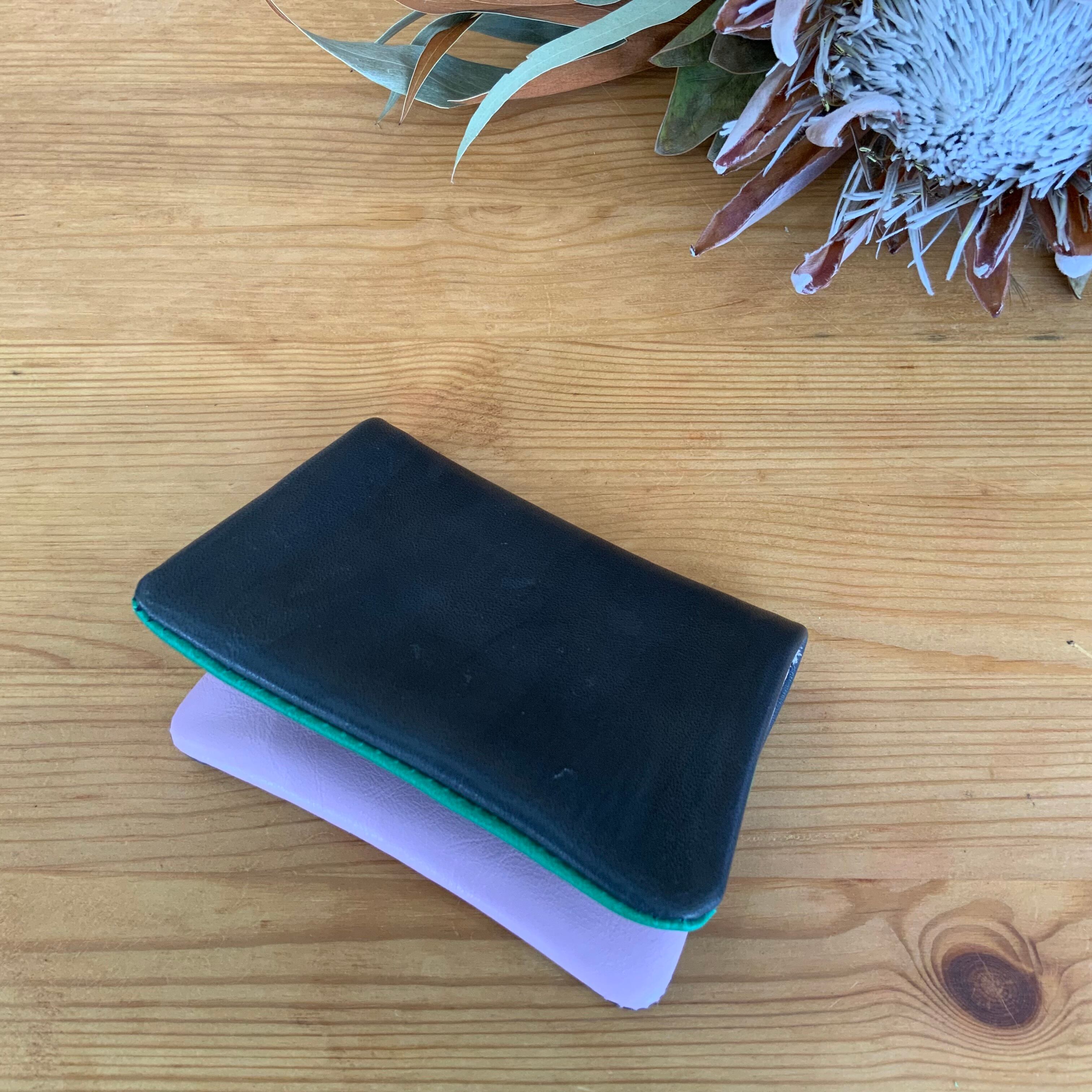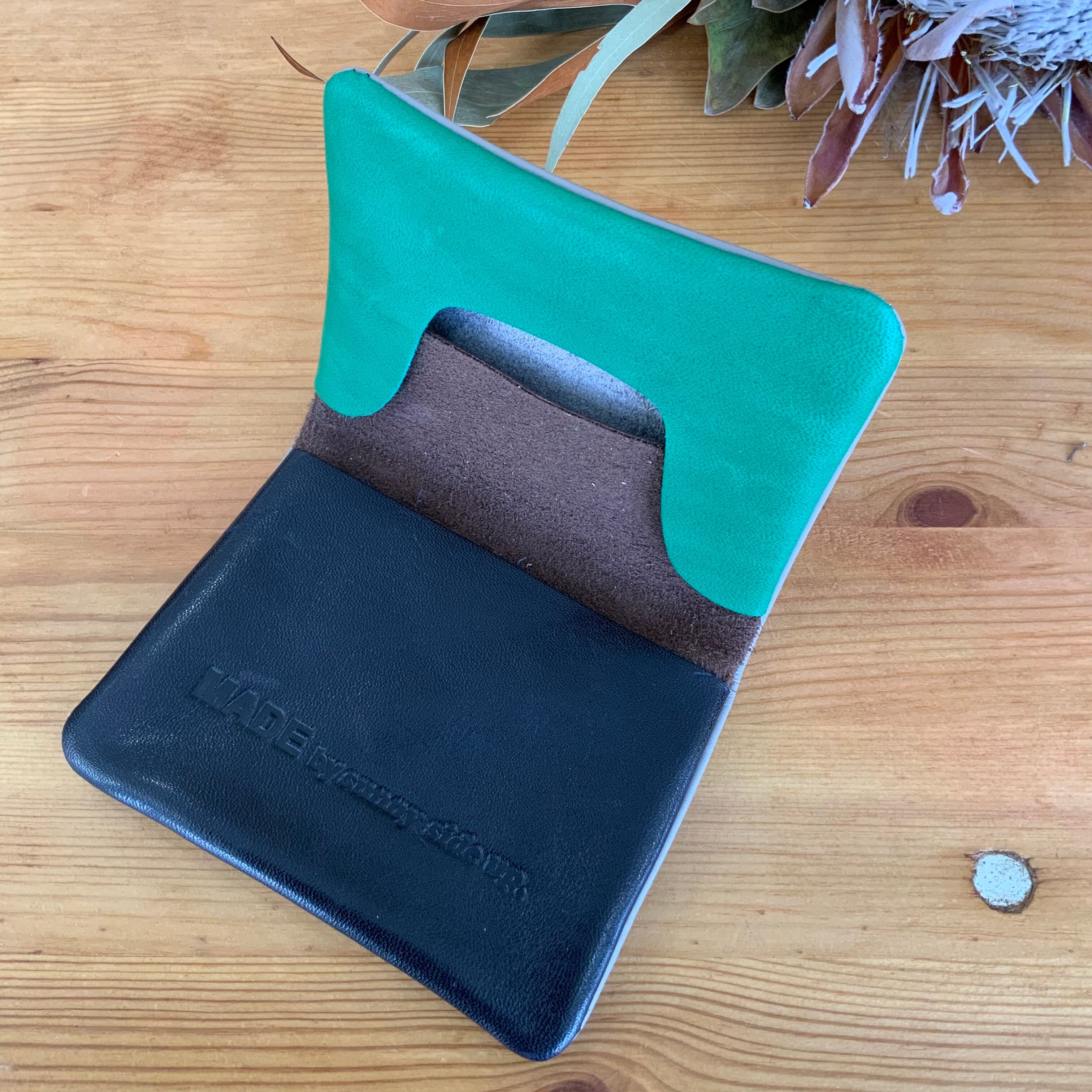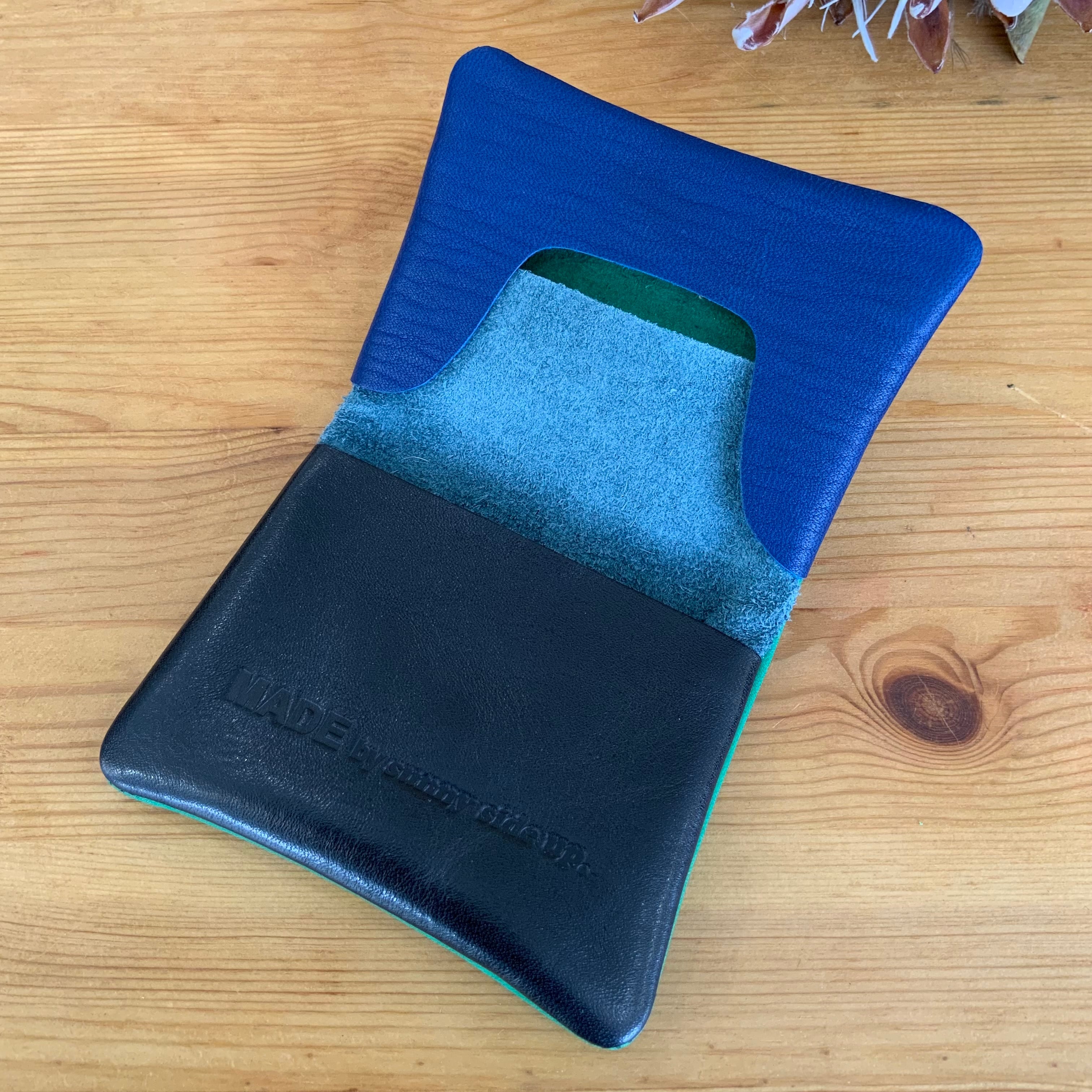 柔らかな肌触りのカウレザーを使用。2つ折りでジップやボタンを使わないシンプルな作りでありながらコインが落ちにくい仕様となっています。