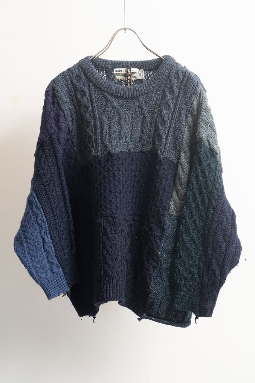 表情が豊かなリメイクフィッシャーマンニット。最初からヴィンテージの風合いを持ちながら、さらに経年変化も楽しめる1枚です。