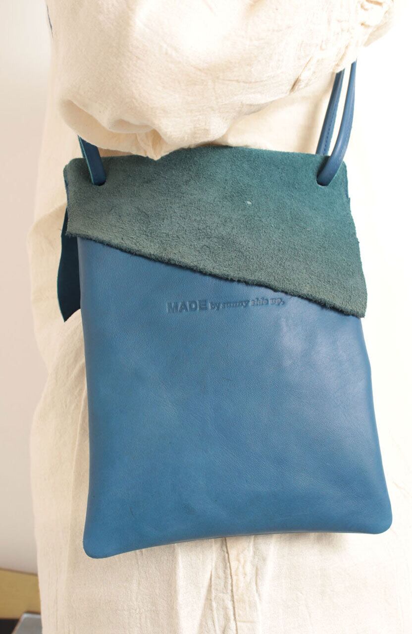 こちらのポーチ(サコッシュ)は革製品の製作工程で出た端材を活かして作られています。留め具やポケットなどのないシンプルなデザインは、着る服を選びません。