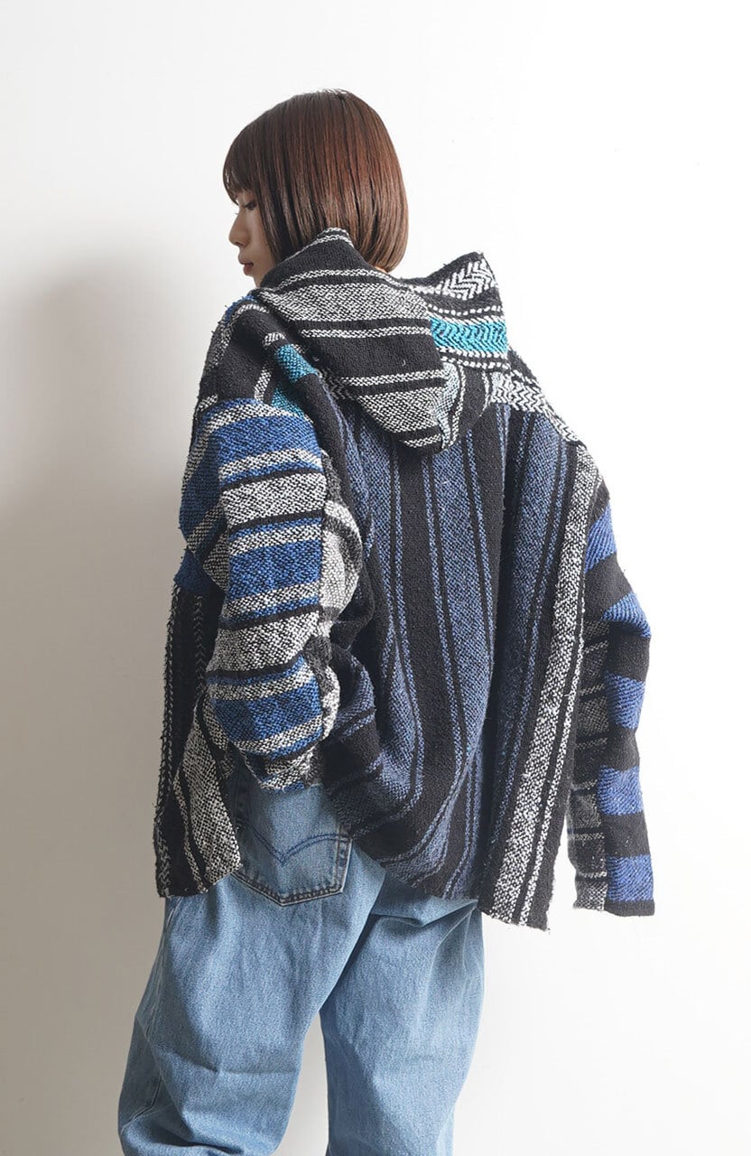「メキシカンパーカー」は、かつての西海岸のサーフ文化やヒッピー文化、ドラッグカルチャーの象徴的なアイテムとして親しまれてきた歴史があります。そういった歴史のあるUSEDメキシカンパーカーを複数枚解体し、柄の良い部分を組み合わせてリメイク。1点1点色や柄の表情が異なり、すべてが1点ものです。