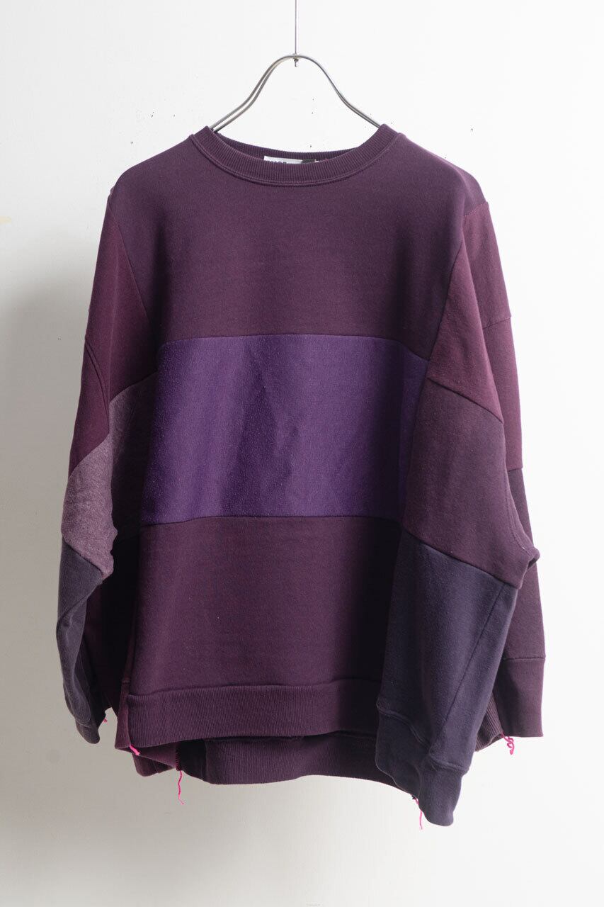 同色系のスウェット15枚を解体し、それを独自のセンスのパッチワークで唯一無二の1枚に繋ぎ合わせています。